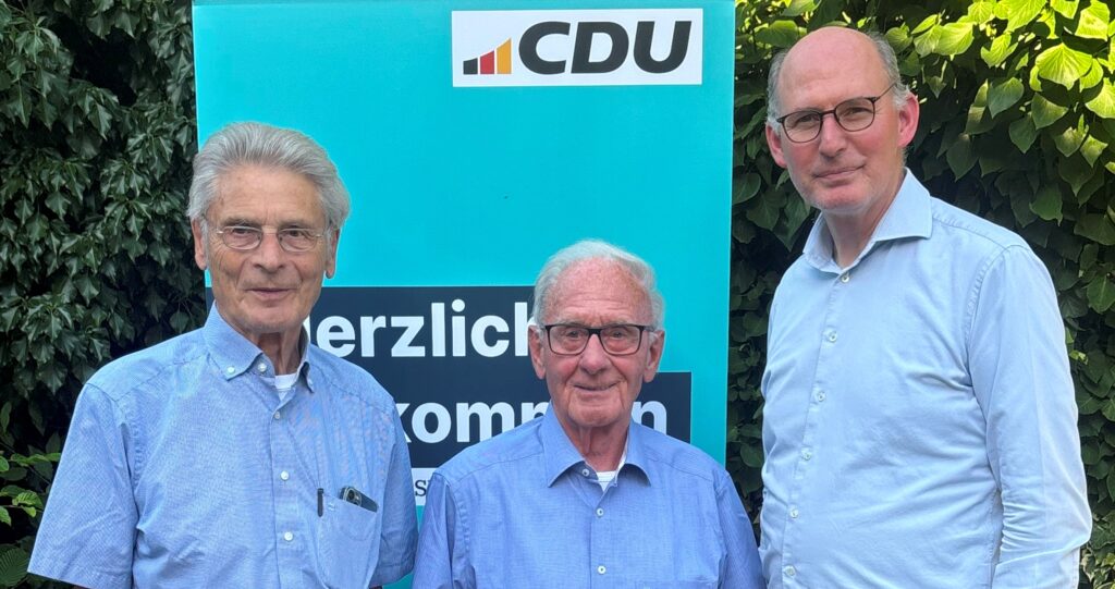 Kreisvorsitzender Christoph Plett MdL mit Vorstand Kevin-Leon Kunz überreichten Urkunden und Ehrennadeln an die Jubilare. In ihren Ansprachen würdigten sie das langjährige Engagement und den beständigen Einsatz der Geehrten für die Werte und Ziele der CDU. Dabei wurde für 40-jährige Mitgliedschaft in der Partei und langjährige aktive Mandatsausübung im Orts- und Gemeinderat, Hans Grünhagen aus Lengede, gedankt.